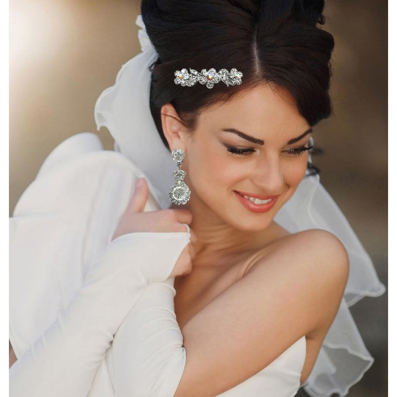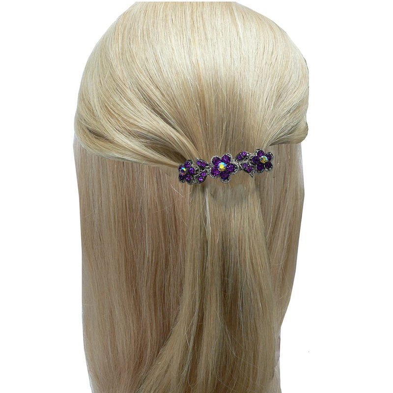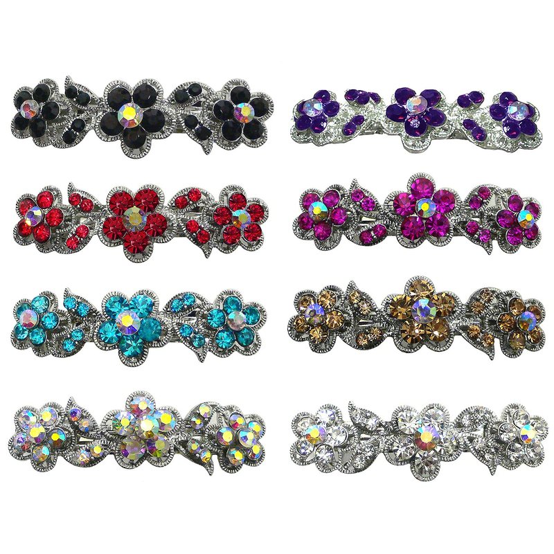 Set of 8 small barrettes, sparkly crystal flower barrettes, size is 2.25" x 11/16". French clasp with small opening at 1.25", ideal for women with thin hair, young girls, toddlers, wear 1 or 2 , 1 hairclip on each side of head.