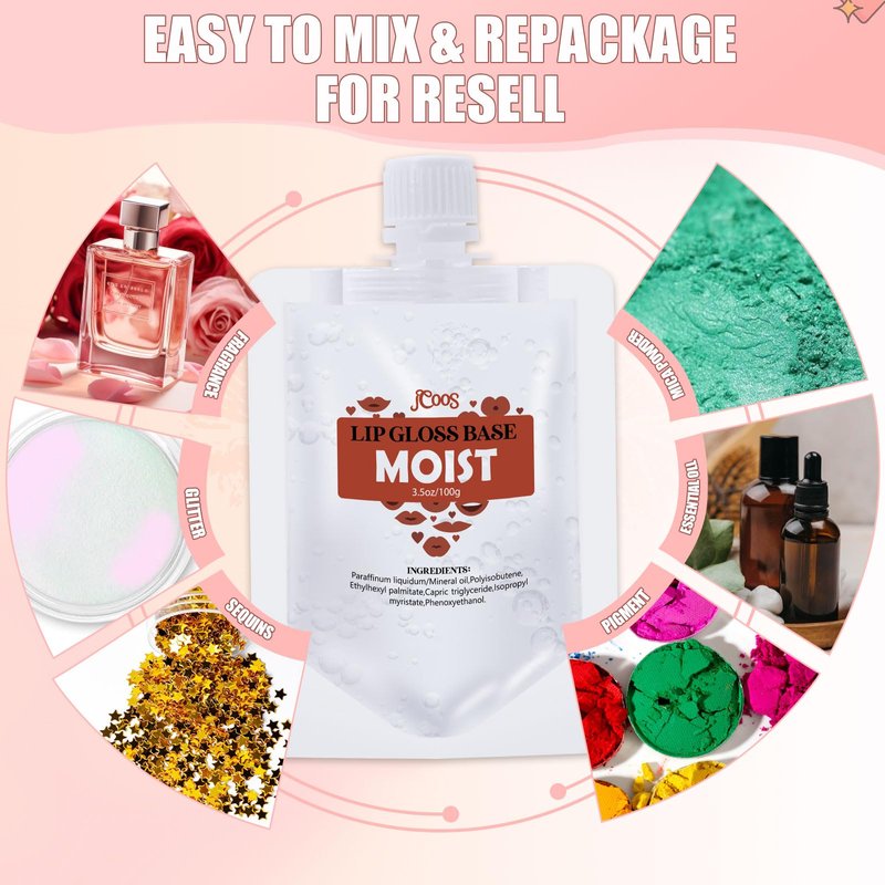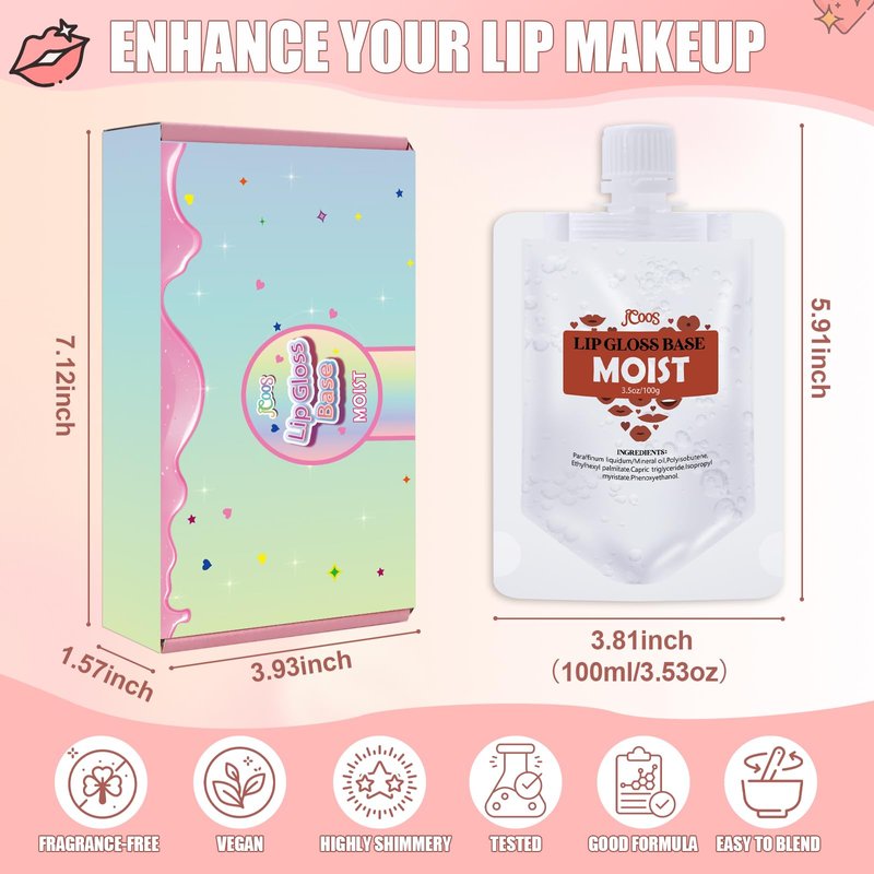 - MAKE YOUR OWN MOIST LIP GLOSS: JCOOS 2PCS (2*100ml) Moist clear lip gloss base are perfect for diy lip gloss making kit. The clear clear lip gloss pack allows for a wide range of custom shade creations to match your personal style and preferences. Looking forward to your masterpiece by our lip gloss for women and girls