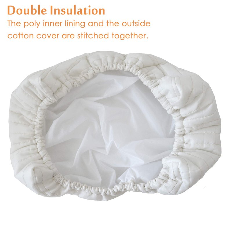 - Double Insulation - The wind block poly lining and the outside cover are stitched together. Quilted machine washable poly/cotton cover.