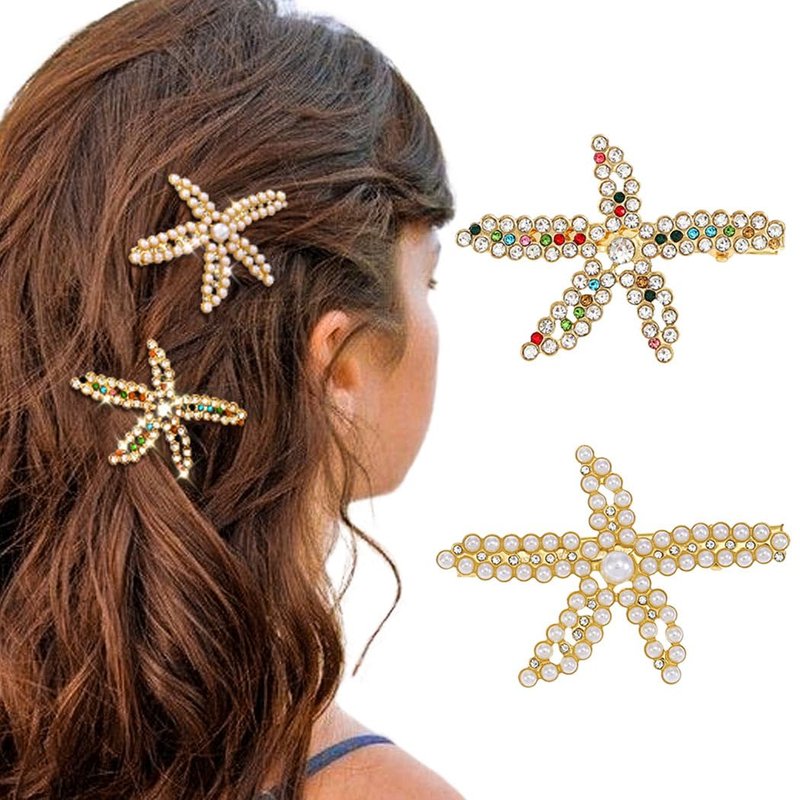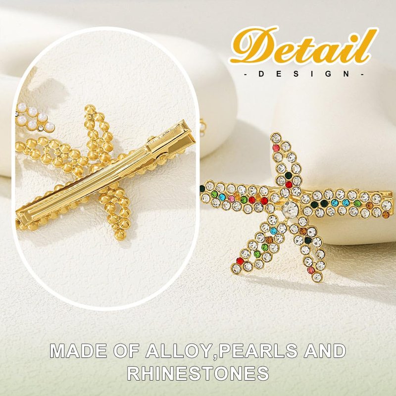Jeairts Starfish Hair Clips Gold Pearl Rhinestone Barrettes Sparkly Crystal Wedding Headpiece Beach Hair Accessories for Women(2pcs) (3-Pearl and Rhinestone)