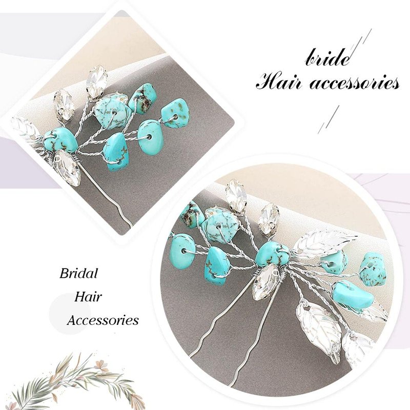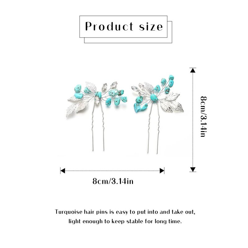 - Green hair pins is the actual idea of using alloy,green turquoise,rhinestone and leafs,simple yet elegant desigan for wedding bride.