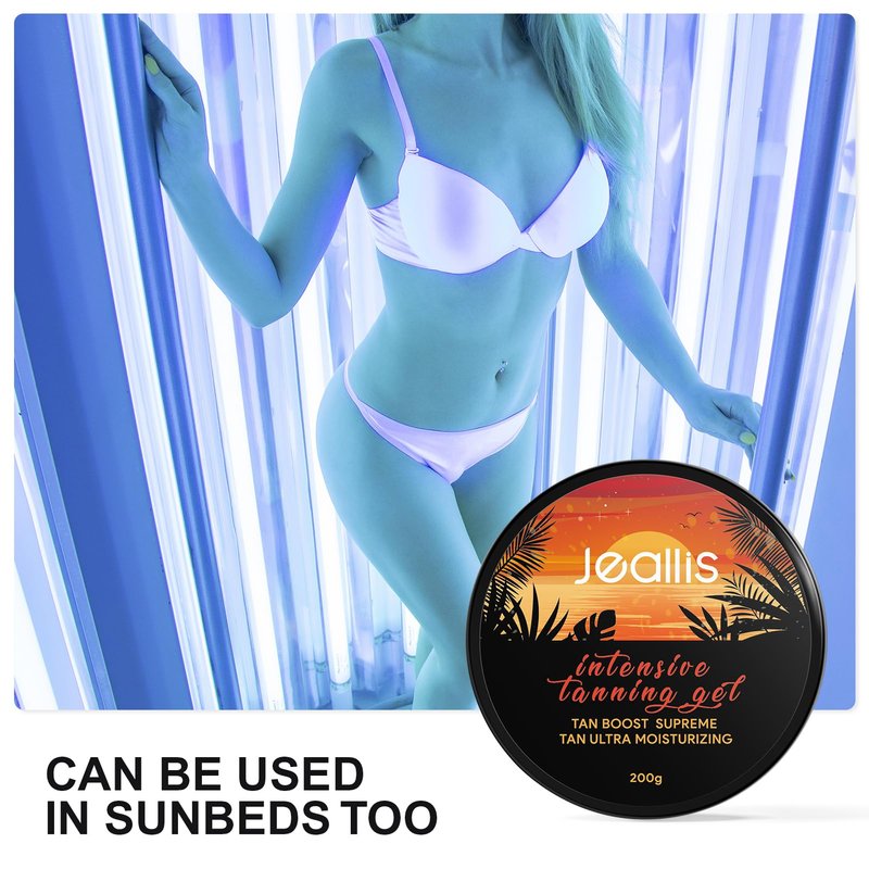 - Tested on animals? Definitely not. Only prime ingredients? Yes! Designed to be Vegan, Gluten Free, and Cruelty Free, Jeallis tanning gel for outdoor sun and sunbeds takes no shortcuts in bringing you the best for your skin. Our products contain only the finest natural, nourishing ingredients loved by every skin type. This stuff for beach is the summer & pool & beach gifts for women.