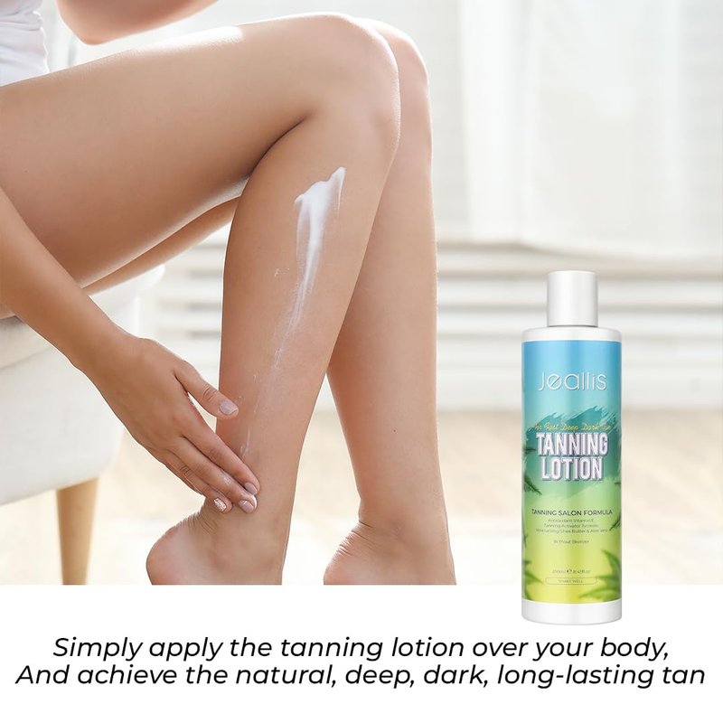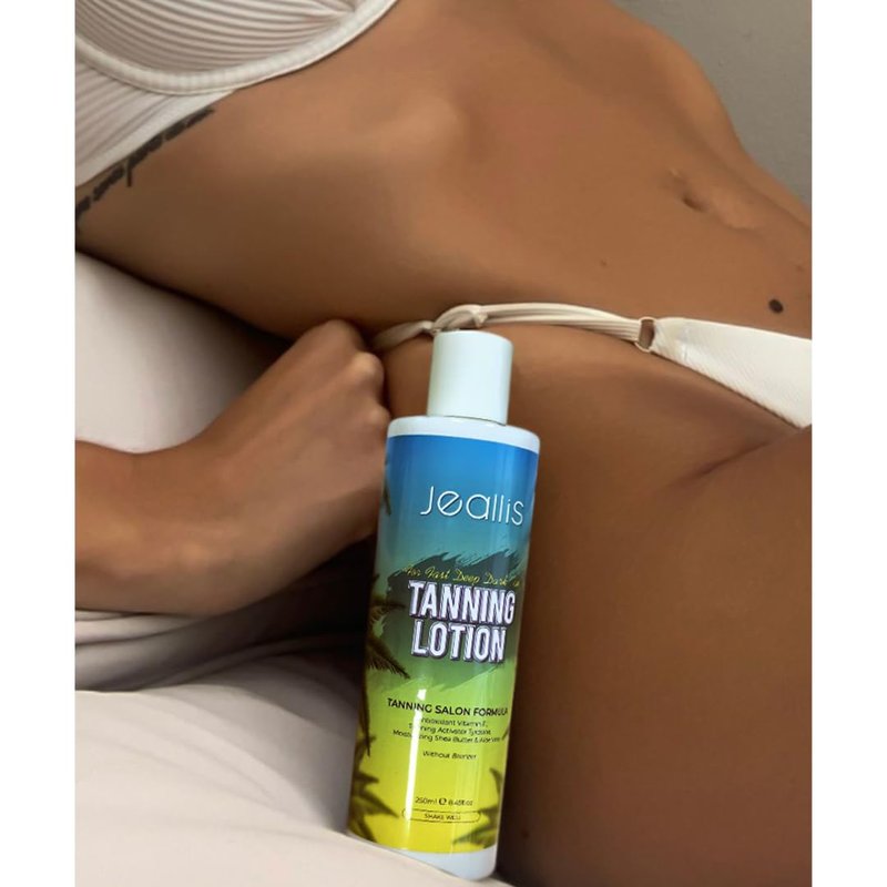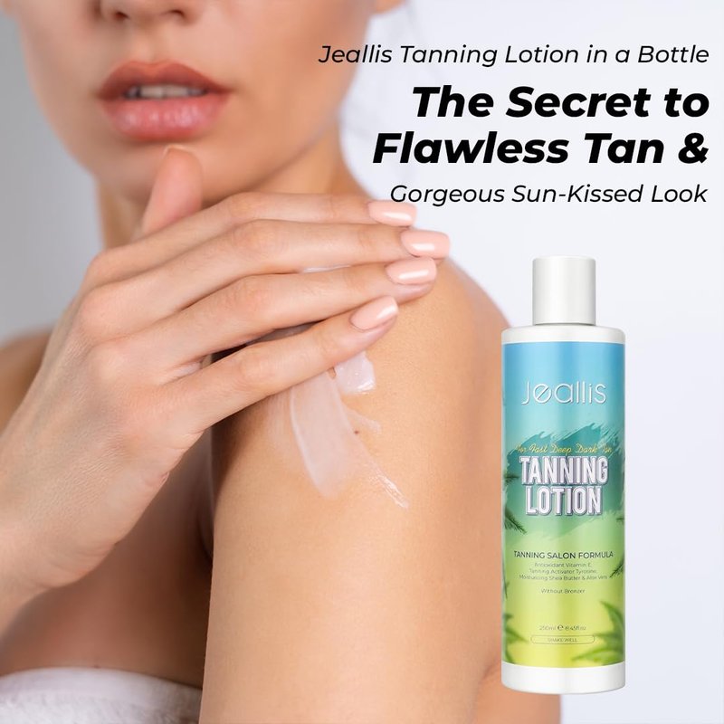 - EXPECT RESULTS REGARDLESS OF YOUR SKIN TYPE EVEN FAIR SKIN:A prefect sunbed lotion choice even for people with fair pale skin. Unlike tanning lotions that may make your skin look orangey and unnatural, the Jeallis tan accelerating cream without the use of bronzing agents or DHA works in synergy with your skin to help it achieve a natural tan that compliments all skin types. You will see it make a difference after once use with our tanning bed lotion & tan accelerator for tanning beds!
