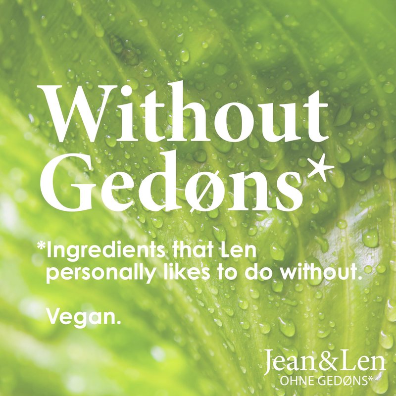 - WITHOUT GEDØNS*: For us, Gedøns* are things and especially ingredients, that our founder Len wants to avoid in our products. These include parabens, silicones and animal ingredients. We do not claim that these ingredients are harmful or bad. We simply don't want certain substances in our products because we know many of you don't want them either.