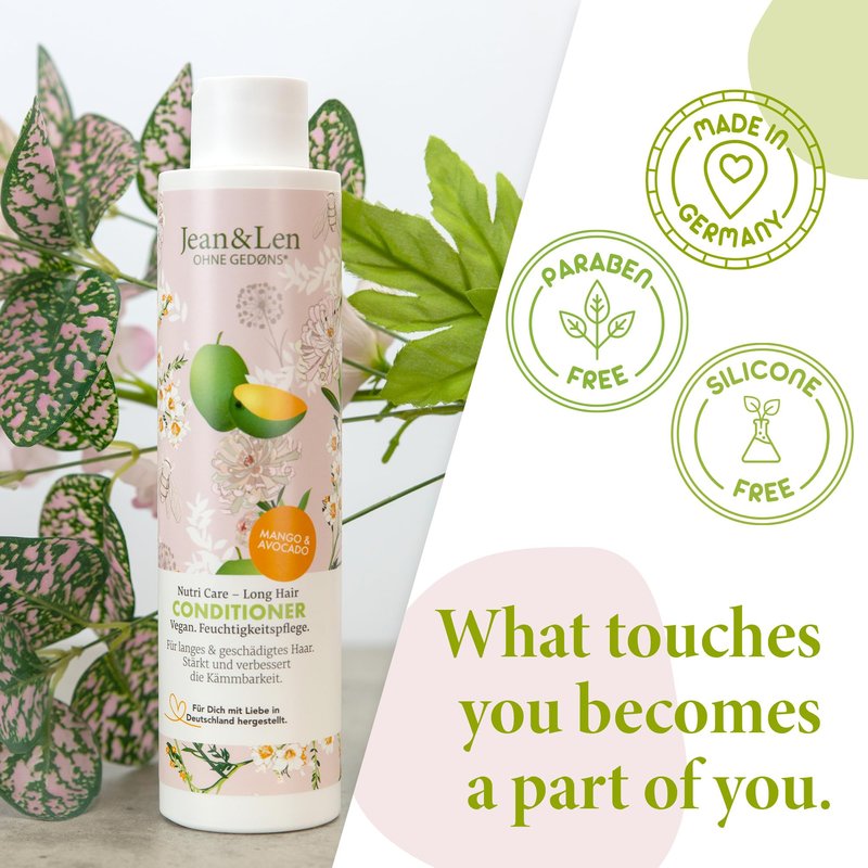 - Jean and Len Nutri Care Hair Conditioner with Mango and Avocado nourishes damaged, brittle ends and leaves long, dull hair looking smooth - Made with love in Germany