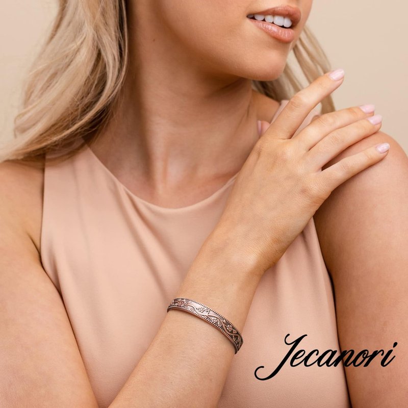 Jecanori 2Pcs Magnetic Copper Bracelets for Women, Vintage Flower 99.99% Pure Copper Bracelets with 3500 Gauss Magnets