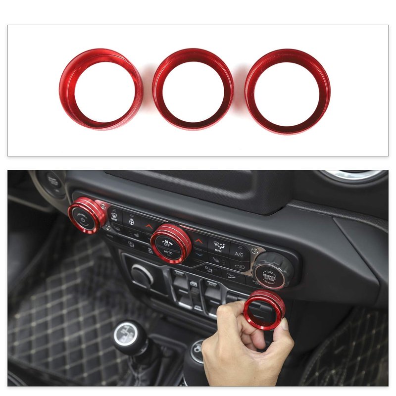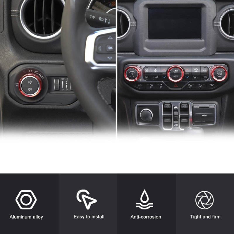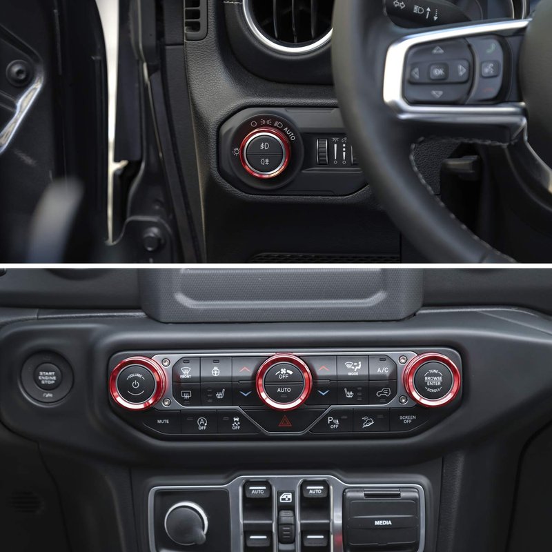 JeCar Air Conditioner Switch Knob Cover & Headlight Knob Cover Aluminum Alloy AC Button Trims Compatible with Jeep Wrangler 2018-2023 JL JLU & 2020-2023 Gladiator JT with Specific Dial Panel, Red