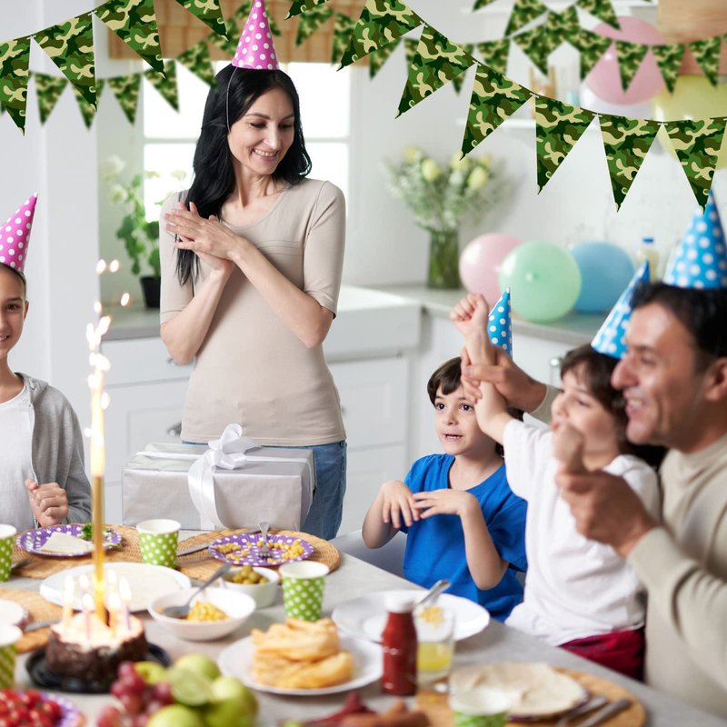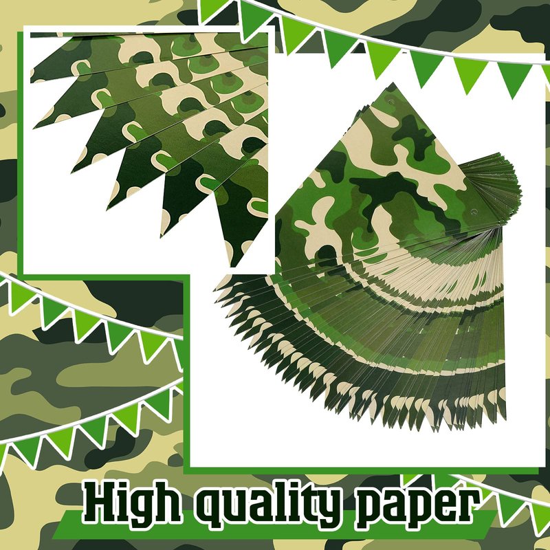 - Camouflage Themed Decor: our camo pennant banner flags are printed with classic camouflage patterns and elements that are colorful and eye catching to give your party a festive look