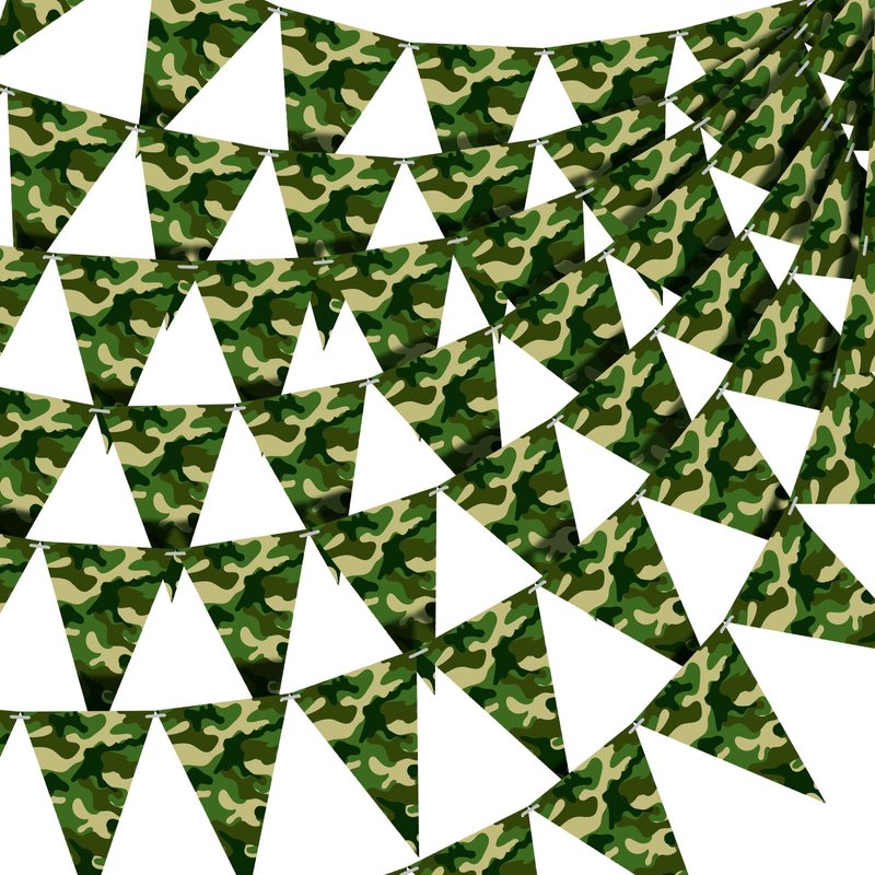 - Widely Use: these camouflage party bunting flags are widely applied on camouflage parties, army birthday parties, camouflage birthday parties, army camping theme birthday parties, military theme parties, birthday parties, soldier retirement home celebrations and many more parties