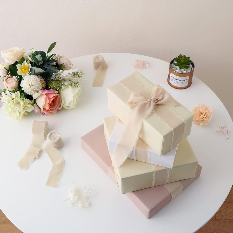 - 【Handmade Ribbon】From dyeing, frayed edges, rolling and wrapping, these silk ribbons are all handcrafted. Besides, ribbons adopt environmentally friendly dyeing, and no worries about fading.