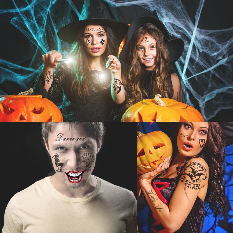 - ❥【NON-TOXIC】- Our Halloween temporary tattoos passed FDA. Healthy, meet rigid safety and environmental materials standard. Non-toxic and easy to remove.