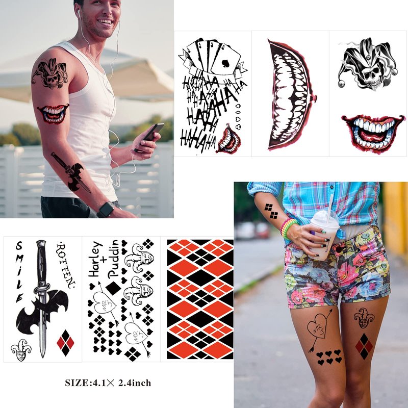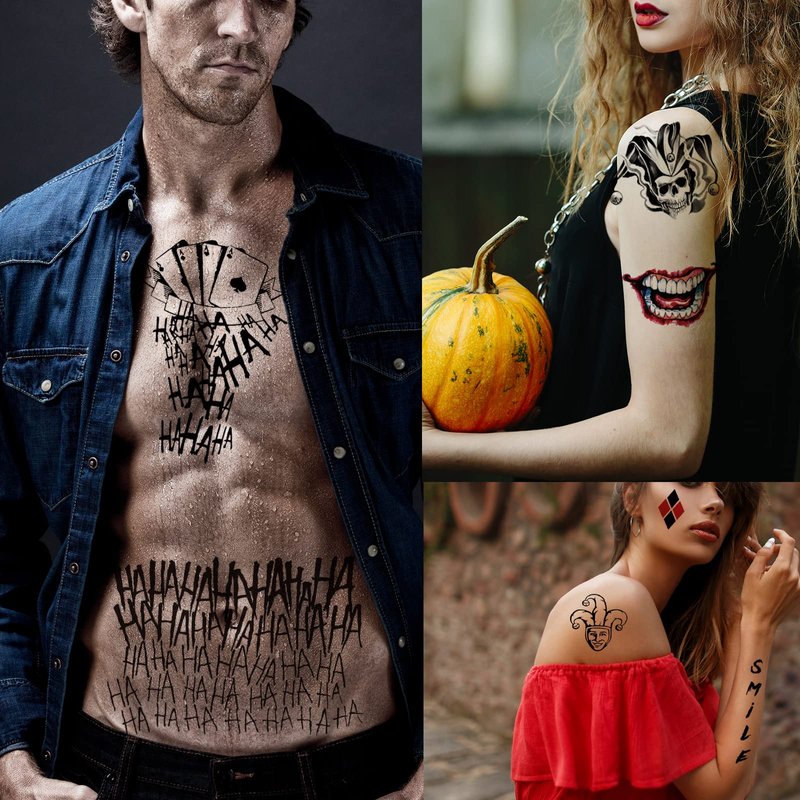 - ❥【APPLICABLE OCCASIONS】- Our temporary Tattoos for Joker great for Halloween, costumes, party accessories, cosplay and more. Wear our temporary tattoos whenever and wherever you want!