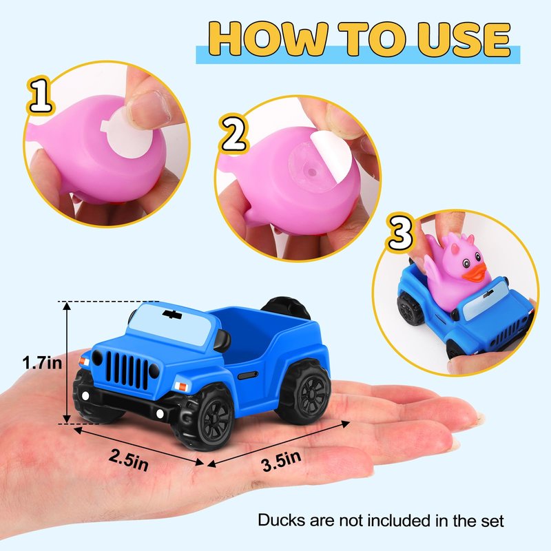 - Jeep for Ducking: Our jeep toy for duck with exquisite jeep shape design and authentic jeep color matching, vividly reproduces the real jeep, attracts the jeep owner’s attention as soon as they appear. It paired with assorted rubber ducks, as a standout addition to ducking game or jeep ducks collect