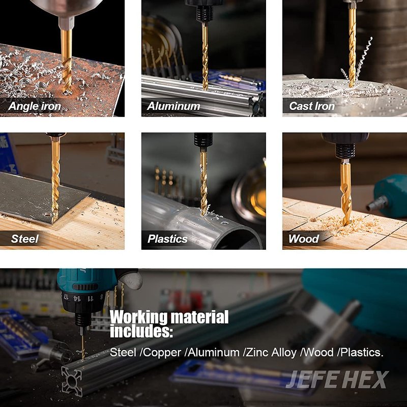 - Professional & Multiple Use - Jefe Hex drill bits are built for general purpose applications, such as DIY projects, home maintenance and MRO (Maintenance, Repair and Operations). Ideal for steel/copper/aluminum/zinc alloy/wood/ plastics.
