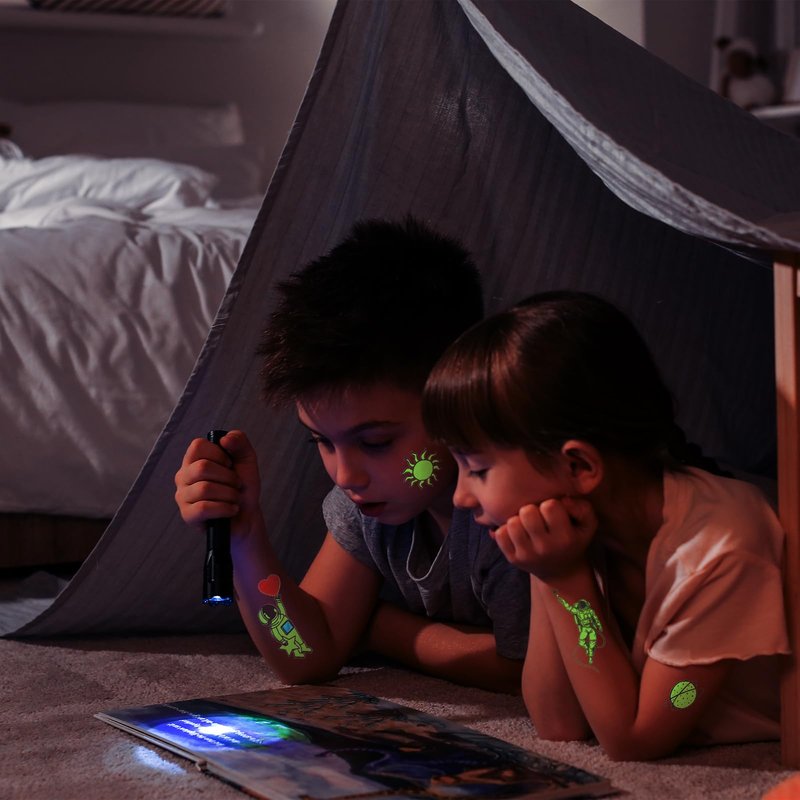 - 【Glow in the Dark】What's a party without a little glow? Our glow in the dark tattoos bring the joy of nighttime fun, captivating children with their luminous magic.