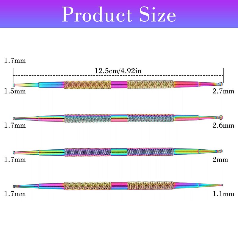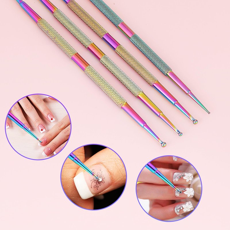 The nail art dotting tools has a larger ball and a smaller ball at each end to meet your different nail design needs, 4 pieces rhinestone picker dotting pen with 6 different sizes, one set to meet all nail art design needs.
