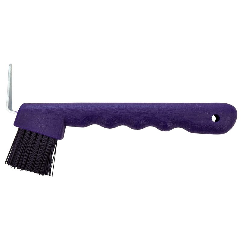 Jeffers Horse Hoof Pick & Brush The Jeffers Horse Hoof Pick and Brush is a combination hoof pick and brush with an approximately 4" easy grip handle. Brush size between 6" to 7". Style may vary. Made in China.