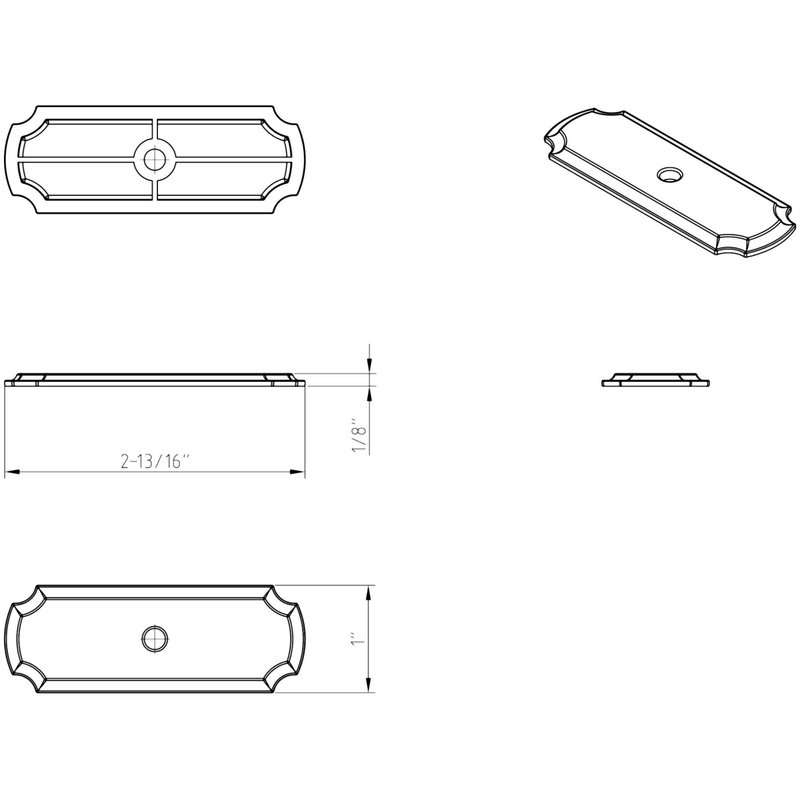 Features: High quality finish resists rust and tarnish through daily use All metal construction for increased durability Covered under a limited lifetime Specifications: Width: 2-13/16" Height: 1" Projection: 1/8" Material: Zinc