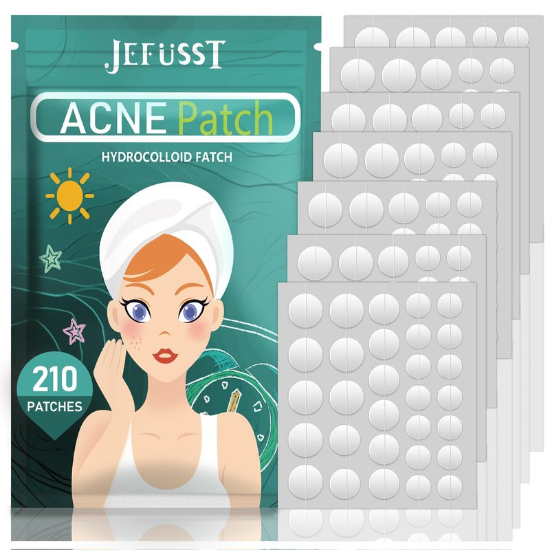 Jefusst Pimple Patches 210 Counts Three Sizes, Hydrocolloid Patch Invisible with Tea Tree Oil, Acne Patches, Zit Patches for Face, Acne Spot Treatment