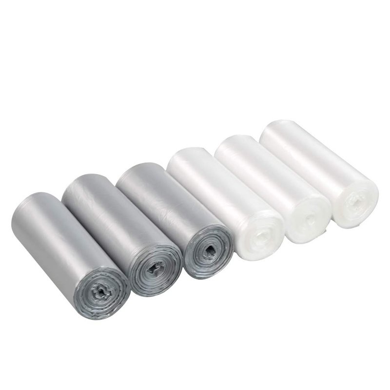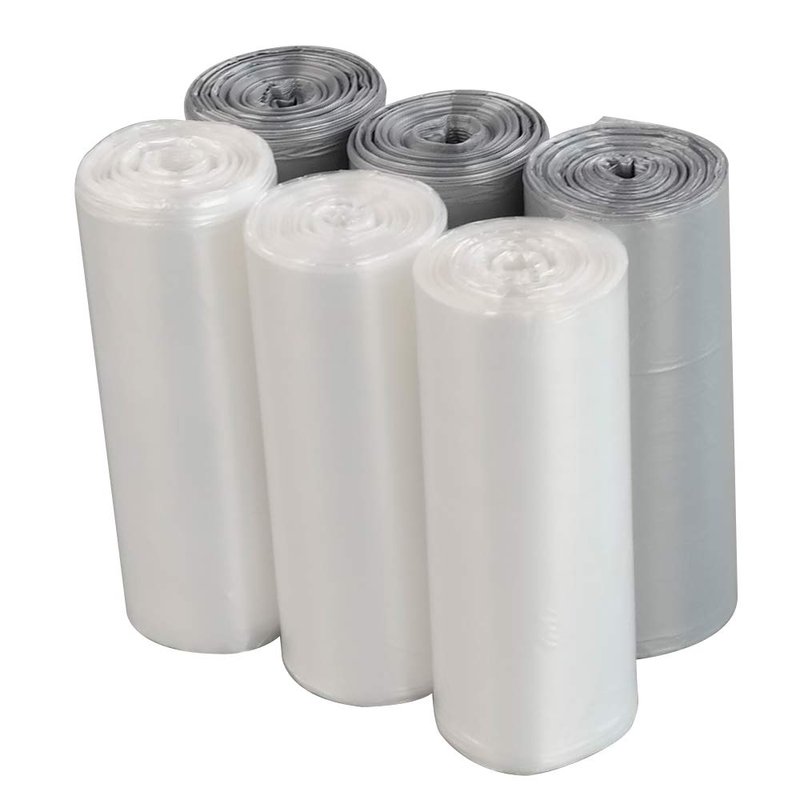 Jekiyo 1.5 Gallon Small Trash Can Liners, Plastic Garbage Bags, Clear and Grey, 6 Rolls/ 150 Counts