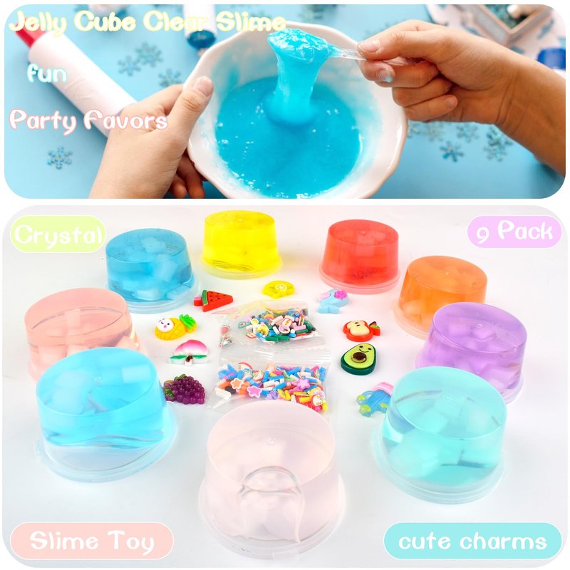 Jelly Cube Clear Slime Kit 9 Pack for Kids, Crunchy Slime, Stress Relief Toy, Party Favors for Girl Boys 6 7 8 9 10 11 12