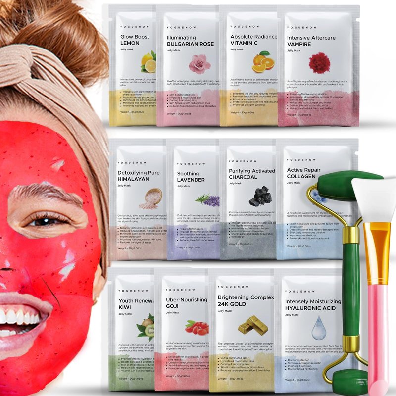 Jelly Mask for Facials - 12 Flavors Hydrating & Brightening Jelly Face Masks | Free Jade Roller & Spatula | Bulgarian Rose, Lavender, Hyaluronic Acid, 24K Gold face mask skin care |Vajacial Jelly Mask