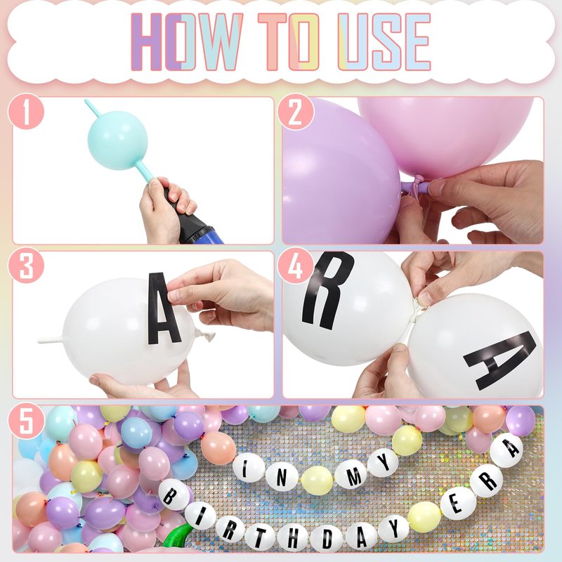 - Easy to Assemble: the balloons in our set are professional link balloons with linking parts at both ends; After the balloons are inflated, tie the ends together to connect them; Then match the colors and paste appropriate letters on the balloons to assemble your personalized party decoration