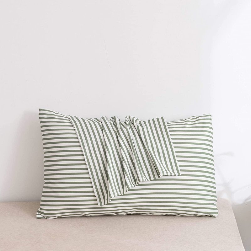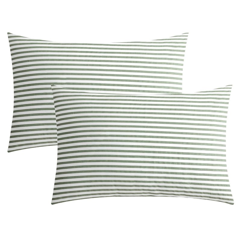 JELLYMONI 100% Natural Cotton Striped King Pillowcases Set, 2 Pack White and Green Stripes Pattern Printed Pillow Covers with Envelope Closure(Pillows are not Included)