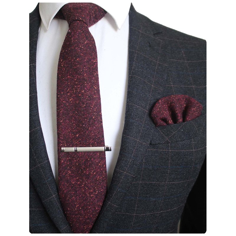 JEMYGINS Burgundy Cashmere Wool Necktie and Pocket Square, Hankerchief and Tie Clip Sets for Men (4)