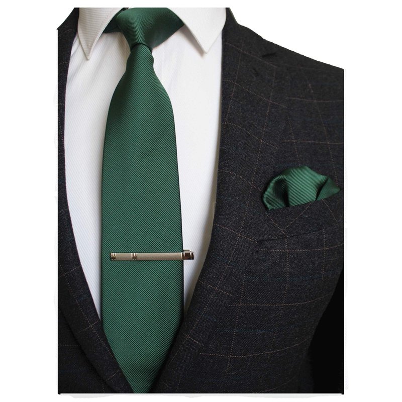JEMYGINS Green Formal Necktie and Pocket Square, Hankerchief and Tie Bar Clip Sets for Men