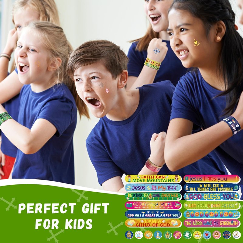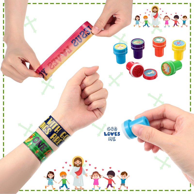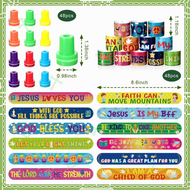 - Religious Party Favors: there are 48 pieces of religious slap bracelets in 12 styles, 4 pieces per style, and 48 pieces of religious stamps in 12 styles, 4 pieces each style, 96 pieces in total, sufficient quantities and diverse styles can meet your multiple using needs