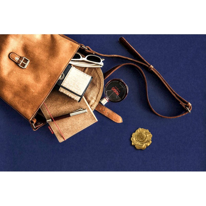 Our compact mirror is manufactured from hard molded plastic in a two dimensional design, featuring a stunning ornate rose finished in a matte golden color. The compact opens at the side with a hinge and reveals two glass mirrors. One is a regular mirror and the second is magnified.