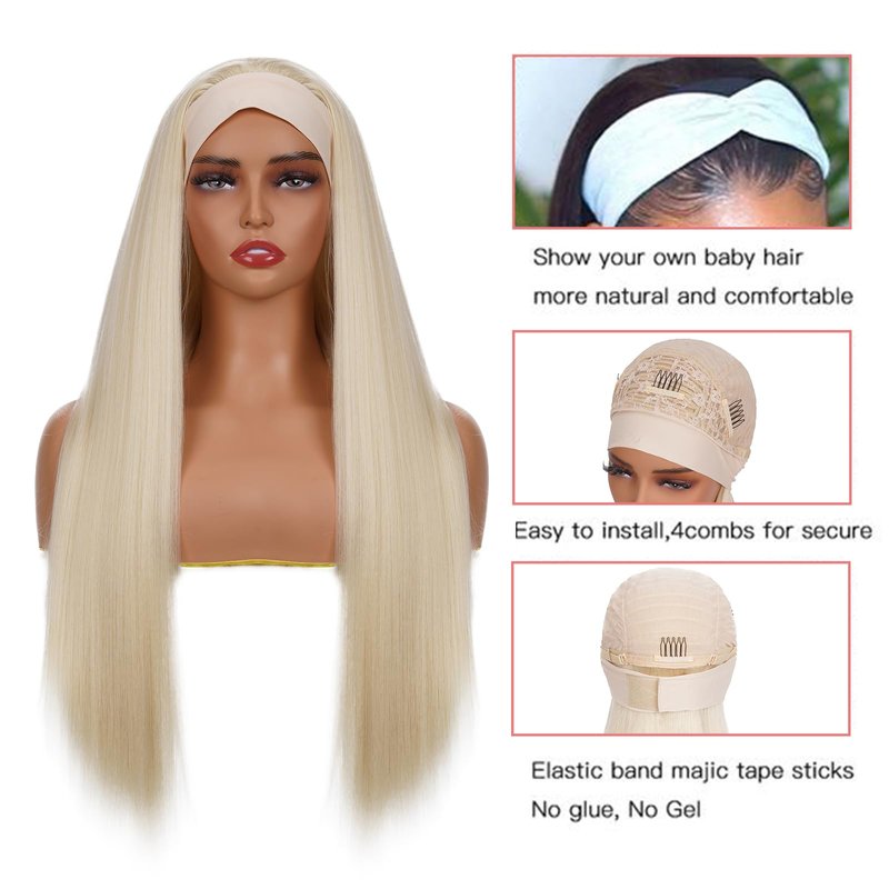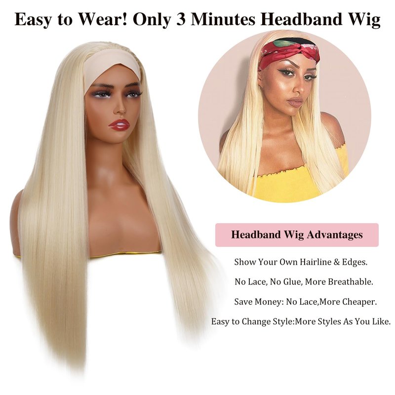 Why Choose Headband Wig? 1.Save Money & Time: No Hairstylist Install Needed! Beginner Friendly--No Need To Cut Lace, No Glue. Very Quick Easy Wear And Go Glueless Wigs, Headband Wig Human Hair Non Lace Front Wigs, Only Takes 2 Minutes!!! 2.Multi-Functional: This Headband Wig Very Natural And Beautiful,Can Show Your Own Hairline And Baby Hairs.You Can Also Make High Ponytail & Bun And Restyle It By Yourself,Comfortable To Wear,Easyto Maintain. 3. Beginner-Friendly: It Is Easy To Wear, And It Can Be Used For a Long Time And Repeatedly, It Also Looks More Natural, Feels Softer And Smoother Than Other Wigs. Headband Wig Human Hair Striaght Human Hair Headband Wig Headband Wigs For Black Women Headband Wig Hair Material: 100% Unprocessed Brazilian Human Hair. Hair Color: 613 Blonde Headband Wig Human Hair. Hair Length: True To Length, 12-24 Inches. Hair Density: 150% Density. Wig Cap Size: Medium Size (21.5"-22.5")
