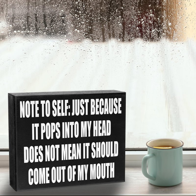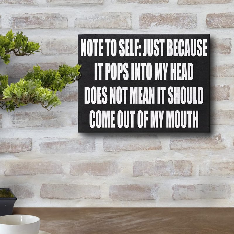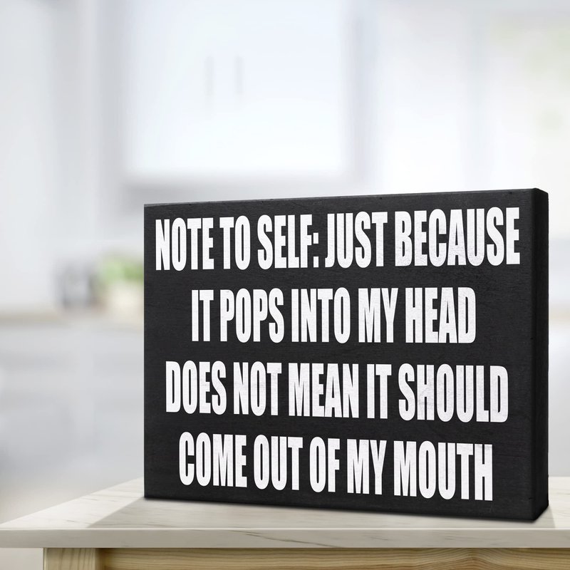 JennyGems Note To Self: Just Because It Pops Into My Head Wooden Sign, Funny Signs and Gifts, Sassy Table Decor and Wall Hanging, Desk and Coworker Decoration, Made in USA