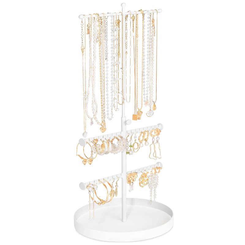 Jenseits Jewelry Organizer Stand, 3 Tier Long Necklaces Organizer Holder Tree, Adjustable Height Earring Display Towers, Bracelets Storage Rack for Dresser Bathroom Vanity