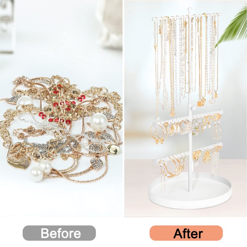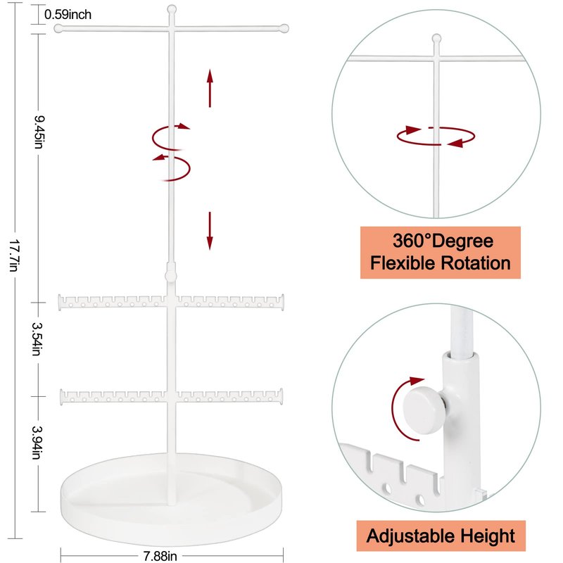 - 💎ADJUSTABLE & ROTATABLE: Keep your precious jewelry free from tangles with this neat and stylish jewelry organizer. Jewelry metal brackets can be adjusted height and rotate the angle according to your preference. You can easily take out the jewelry what you want from the jewelry tree stand