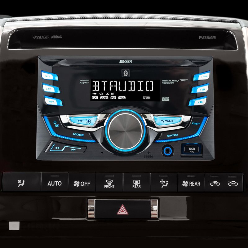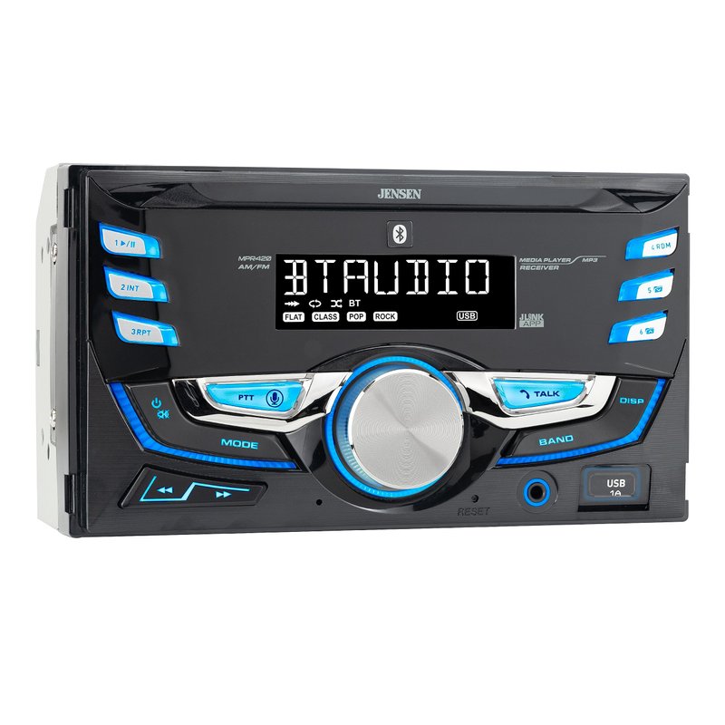 JENSEN MPR420 7 Character LCD Double DIN Car Stereo Receiver | Push to Talk Assistant | Bluetooth Hands Free Calling & Music Streaming | AM/FM Radio | USB Playback & Charging | Not a CD player