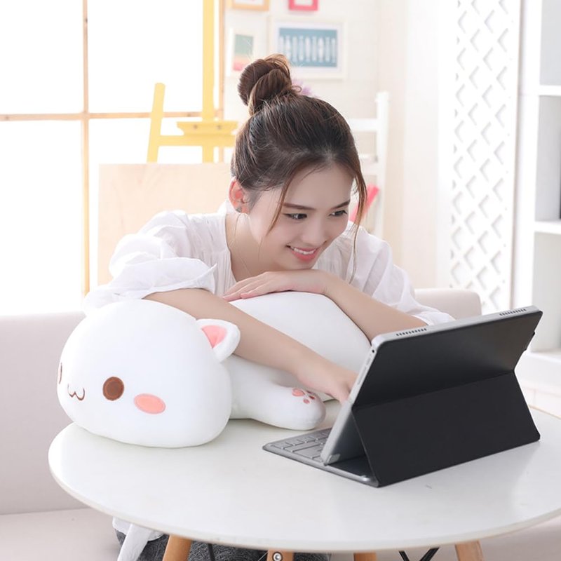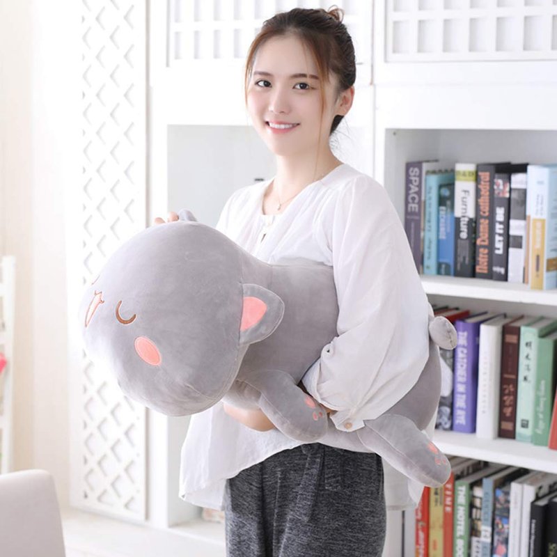 - Cute big size cat stuffed animal plush toy that is also a hugging pillow. When you are sleeping, watching TV, working, you can rely on, hug, super soft and fluffy.