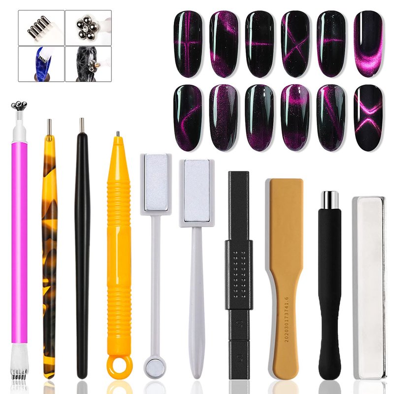 - 💟【10 MAGNETIC PLATES】:10 cat eye magnetic tools, including 1 x double-headed flower cat eye magnetic pen, 3 x nail magnetic point pen, 1 x multi-functional cat eye magnet, 1 x double-headed cat eye magnetic stick, 1 x single-headed cat eye magnetic stick, 1 x rectangular cat eye magnet plate, 1 x cylindrical black silicone handle cat eye magnet, 1 x rectangular yellow silicone handle cat eye magnet, enough quantity to meet your different needs.