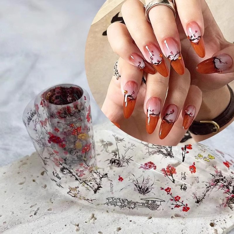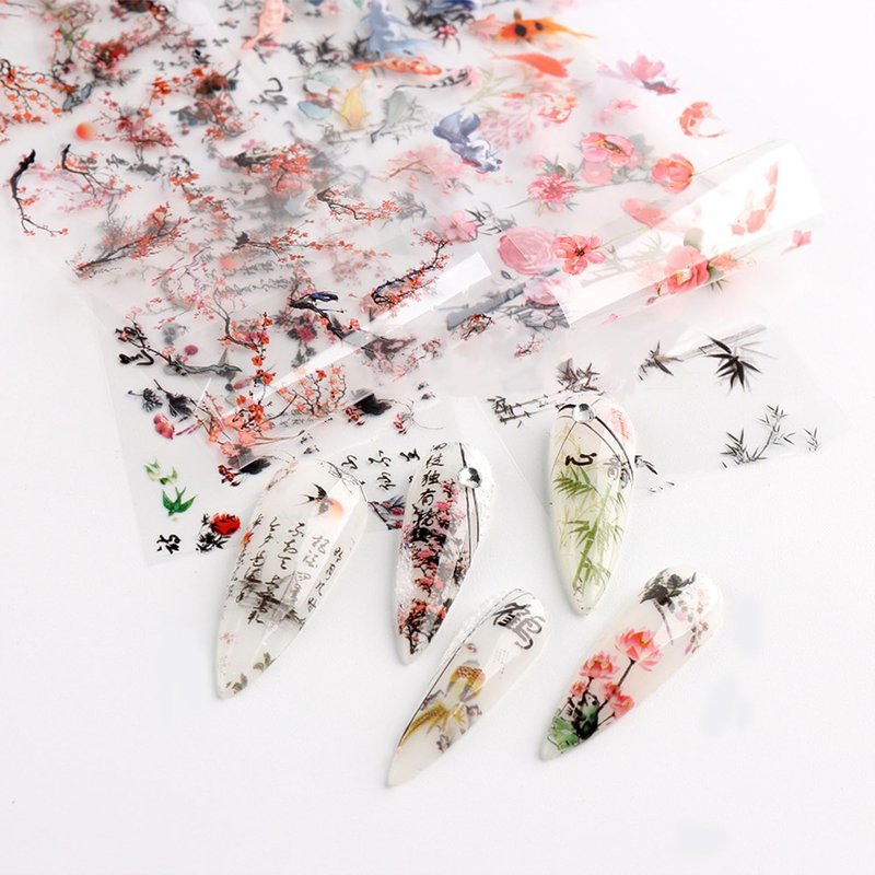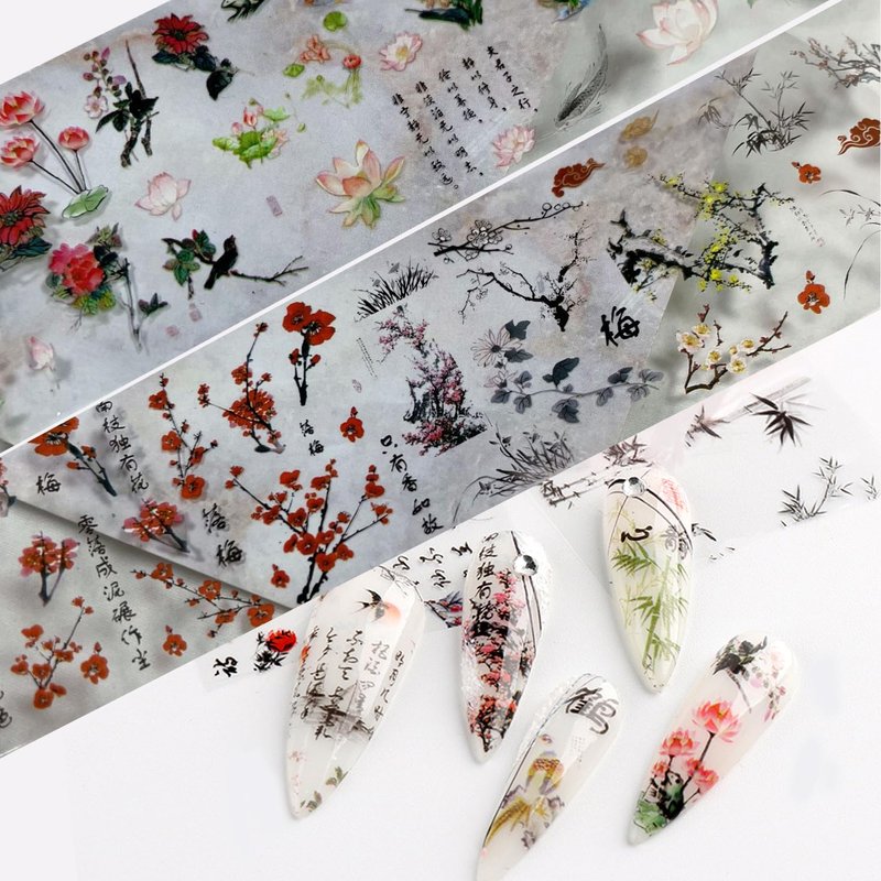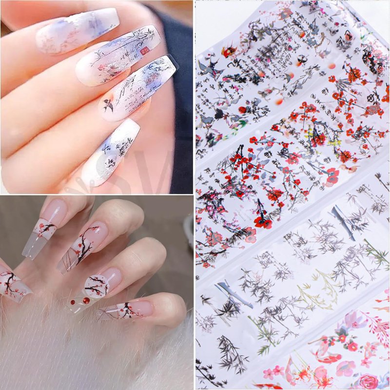 - 【10 Beautiful Patterns】- These foil nail wraps are designed with plum orchid bamboo ink painting patterns, beautiful and exquisite, allow you to design your nails freely, so it will make your nails more dazzling and charming.