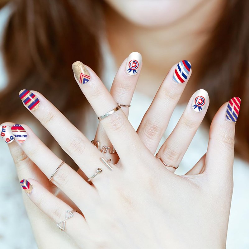 - 🇺🇸【Simple to Operate】:The colorful Independence Day nail wraps are self-adhesive and convenient to use, just choose the patterns you like and paste them on your nails, then apply a layer of nail polish to fix them, you can also match them with a colored base coat or combine different patterns together.