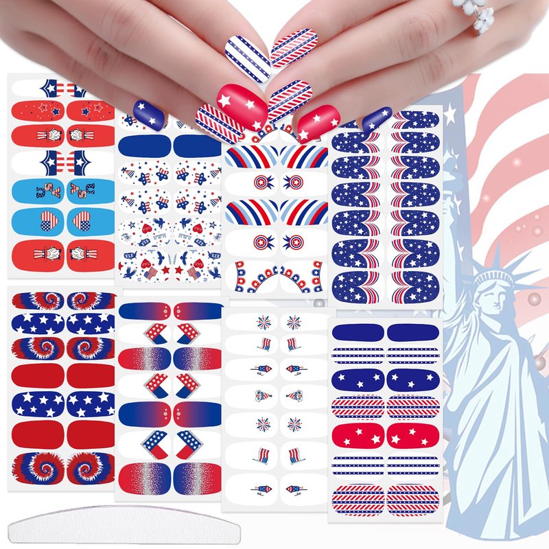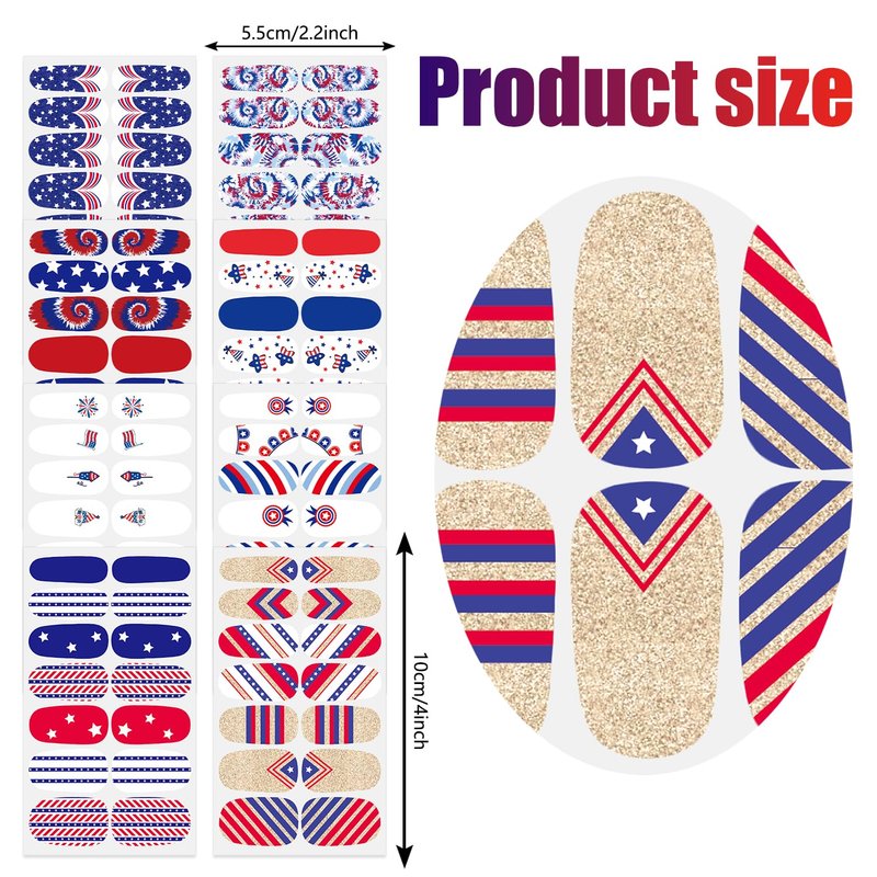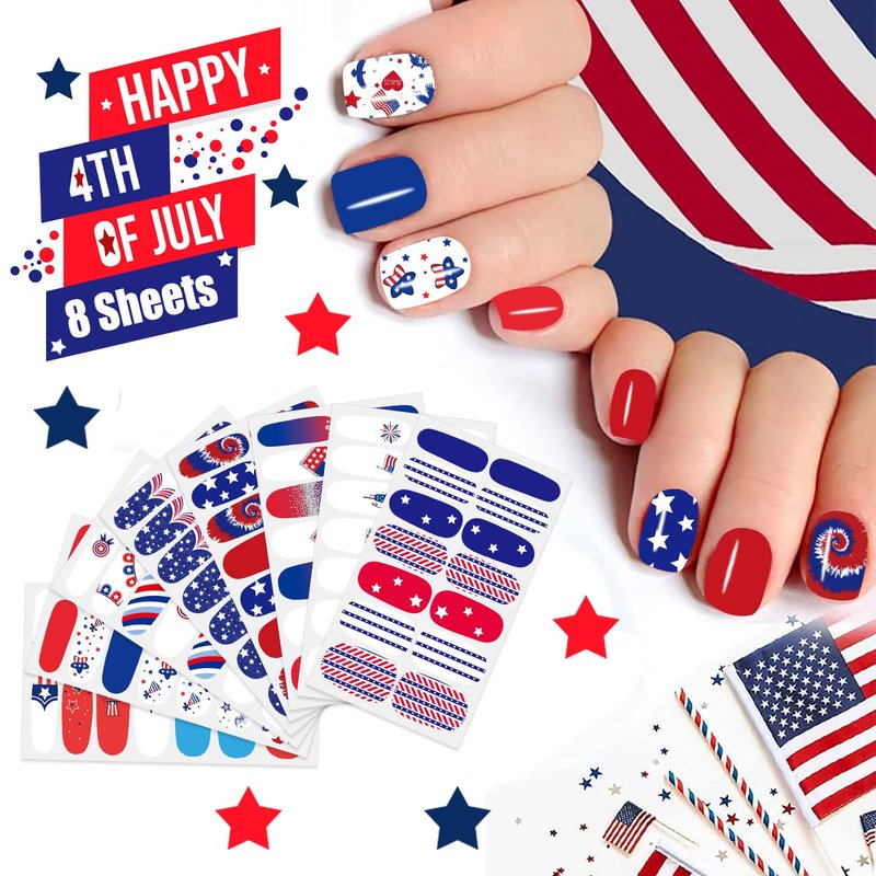- 🇺🇸【Multiple Choices】: You will get a total of 8 sheets of 4th of July nail polish sticker decals, enough quantity for your different decoration use and you can share them with your friends and family members.