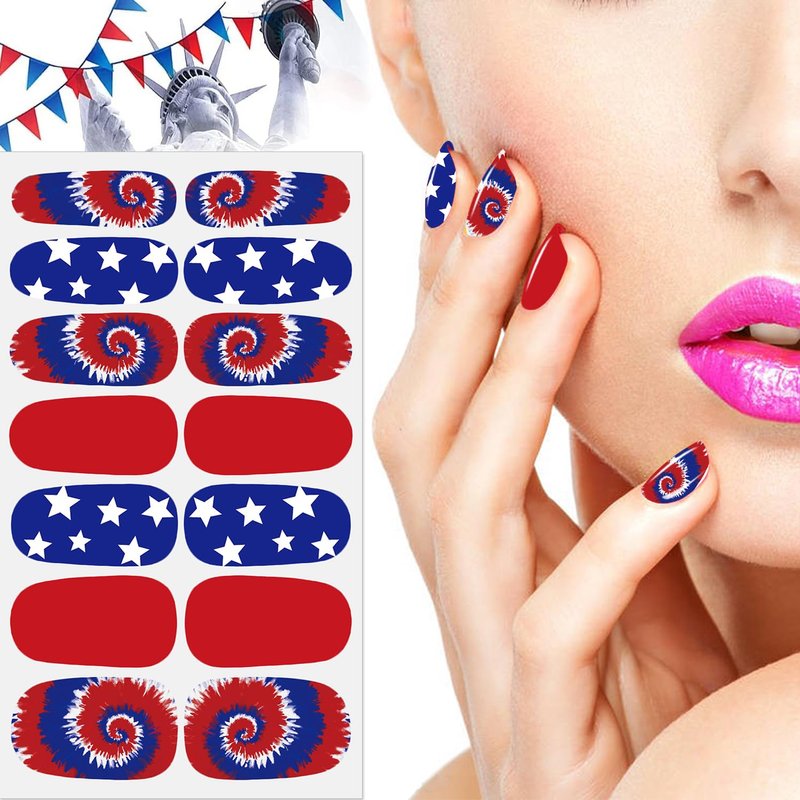 - 【Easy to Use】:These colorful Independence Day nail wraps are self-adhesive and easy to use, just choose the patterns you like and paste them on your nails, then apply a layer of nail polish to fix them, you can also match them with a colored base coat or combine different patterns together.