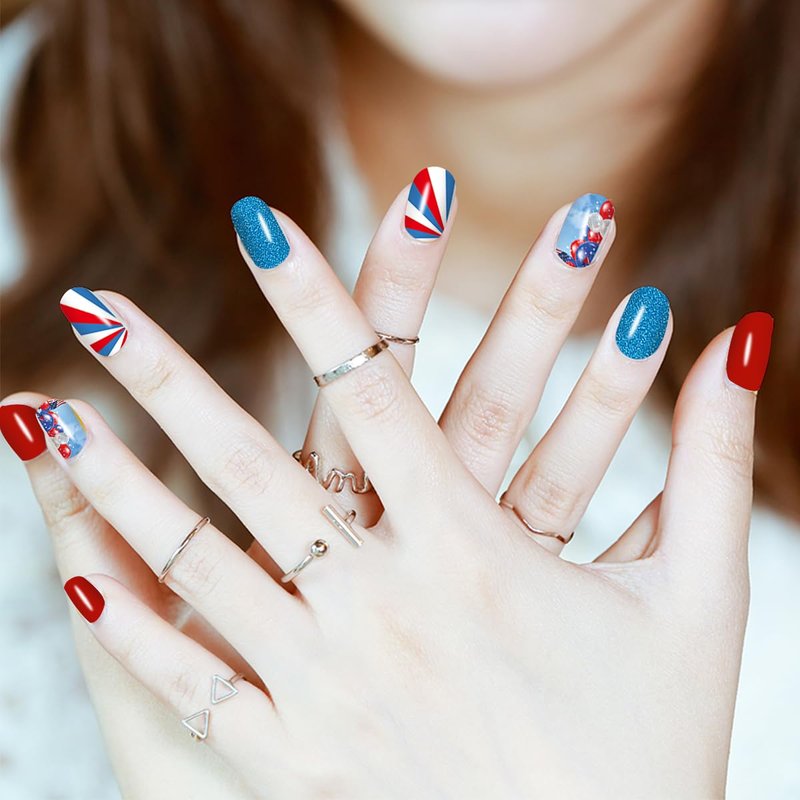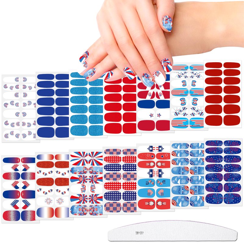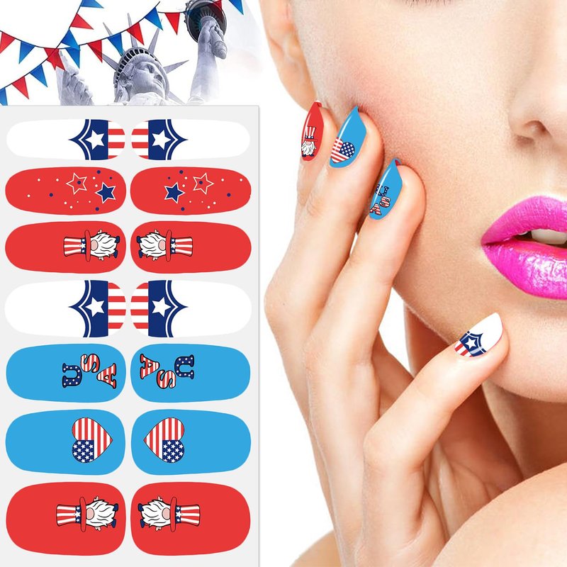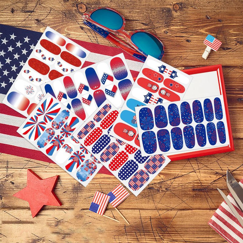 - 【Easy to Use】:These colorful Independence Day nail wraps are self-adhesive and easy to use, just choose the patterns you like and paste them on your nails, then apply a layer of nail polish to fix them, you can also match them with a colored base coat or combine different patterns together.