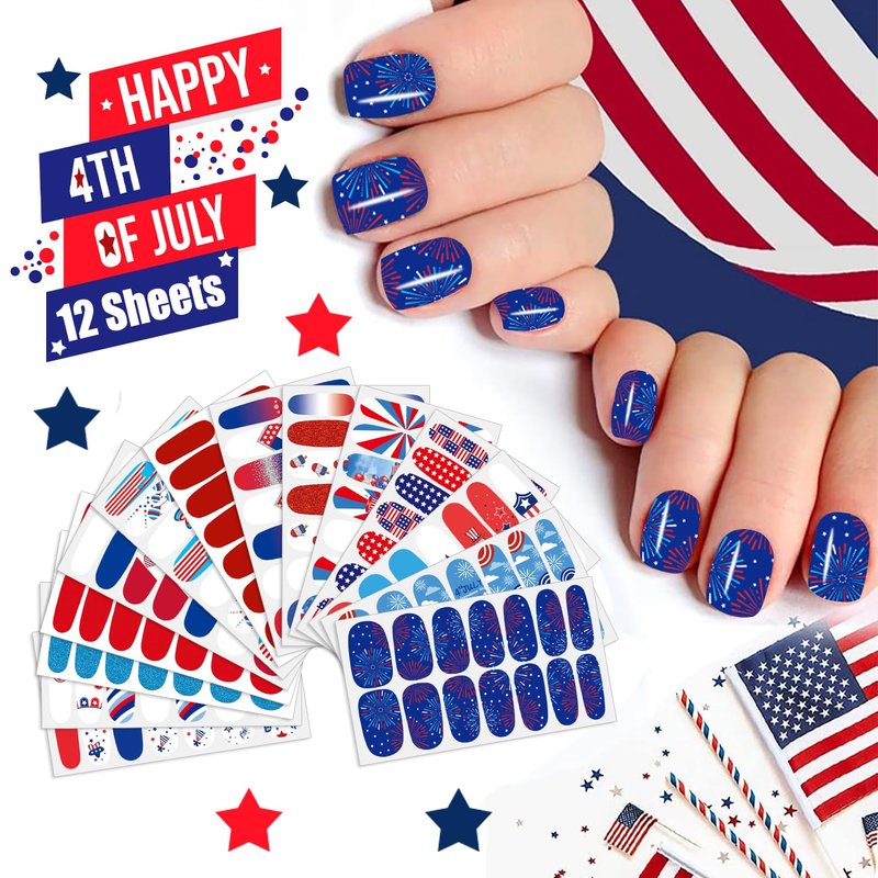 - 【Multipurpose】:These self-adhesive 4th of July nail polish strips are suitable for decorating various nails, including gel nails, acrylic nails, fake nails, nail tips, etc., suitable for you to enjoy nail design with others, they are also cute decorations for your mobile phone, greeting cards, scrapbooks, photo frames, mirror, cups are other things, creating small surprise at your home.