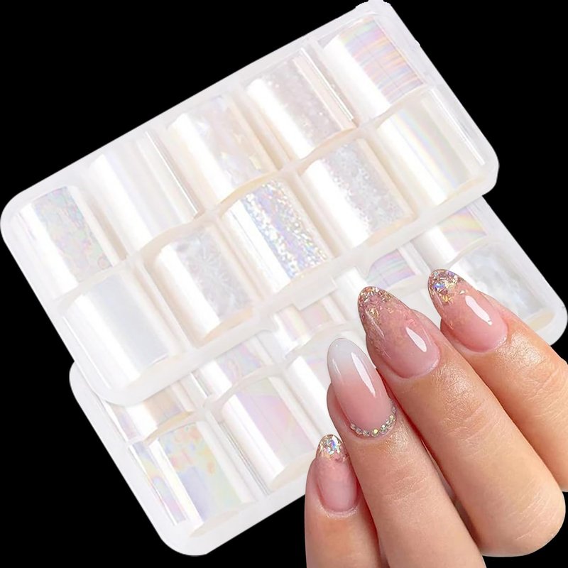 - 🌈【Aurora Transparent Design】 - These foil nail wraps are designed with transparent aurora color, different angles can reflect different color effects, simple and exquisite, allow you to design your nails freely, so it will make your nails more dazzling and charming.