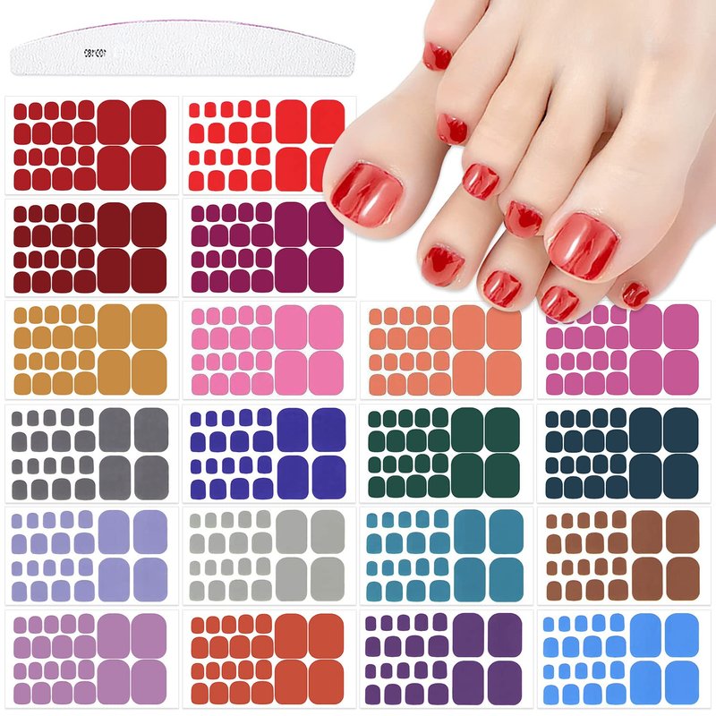 - Package Contents - 20 sheets bright solid color self-adhesive toe nail wraps + 1pc moon shape nail file. 22 pieces for each sheet, 440 pieces in total.