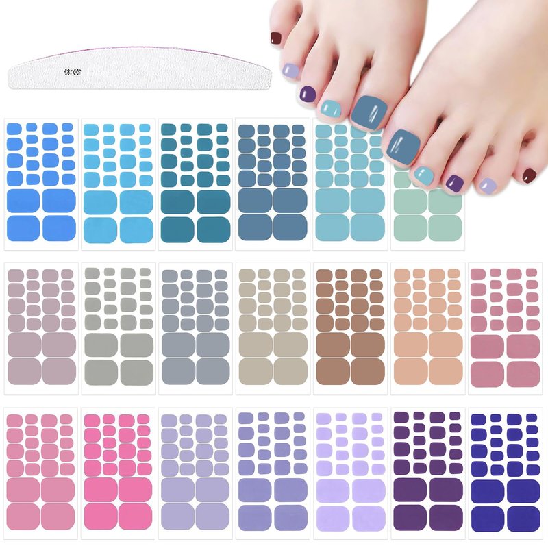 - 【Package Contents】:20 sheets mixed color self-adhesive toe nail wraps + 1pc moon shape nail file. 22 pieces for each sheet, 440 pieces in total.