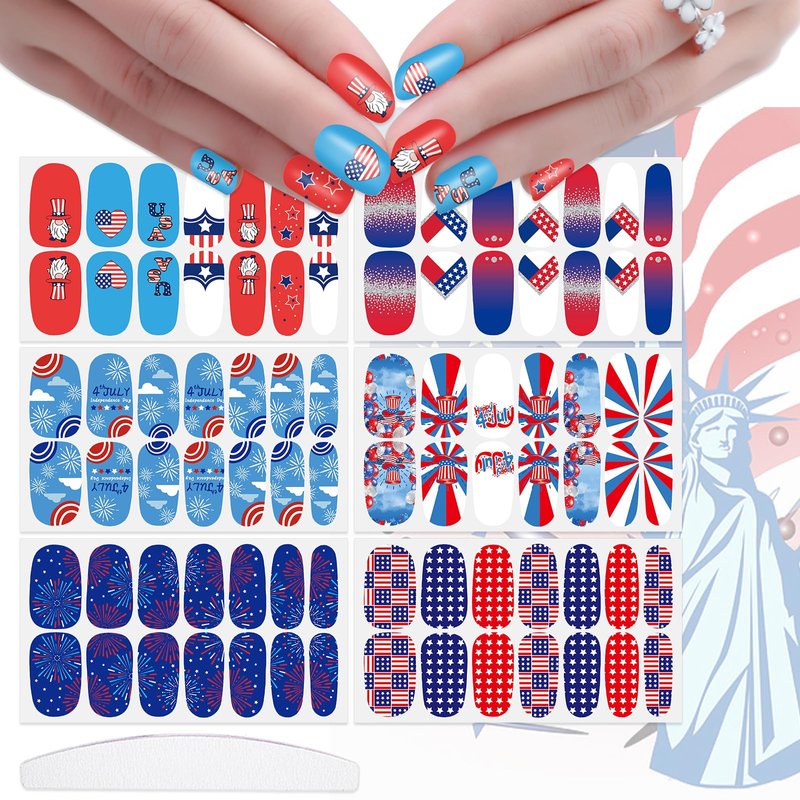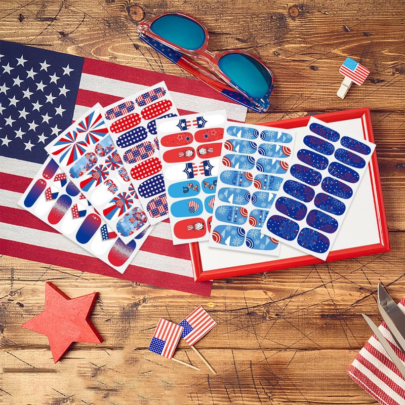 - 【Multiple Choices】:You will get a total of 6 sheets of 4th of July nail polish sticker decals, enough quantity for your different decoration use and you can share them with your friends and family members.