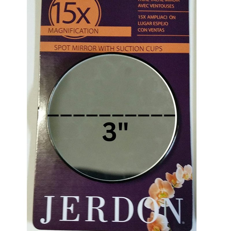 - SPECIFICATIONS - This portable mirror has a 3-inch diameter and 15X magnification. The black finish mirror was designed with 2 suction cups on the back, allowing for easy use.. This mirror comes with a 6.5’ power cord and plug.